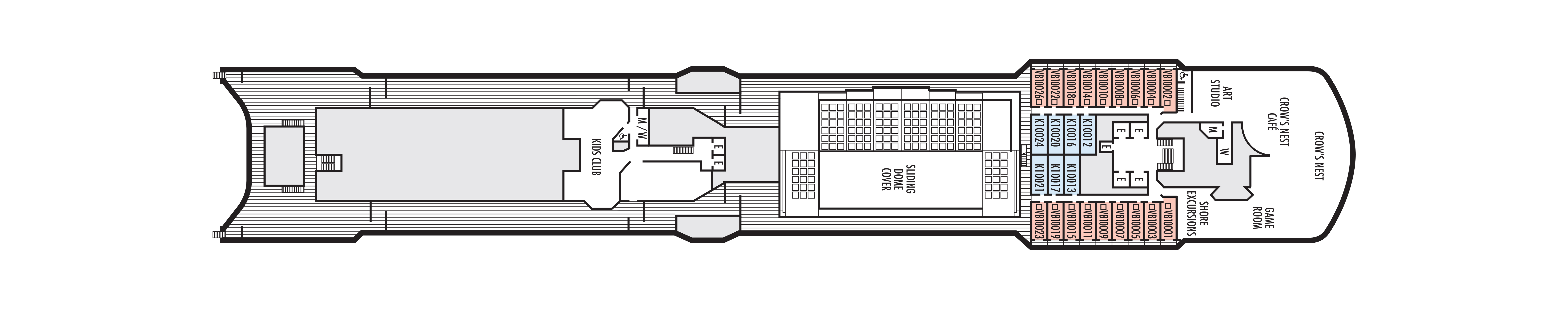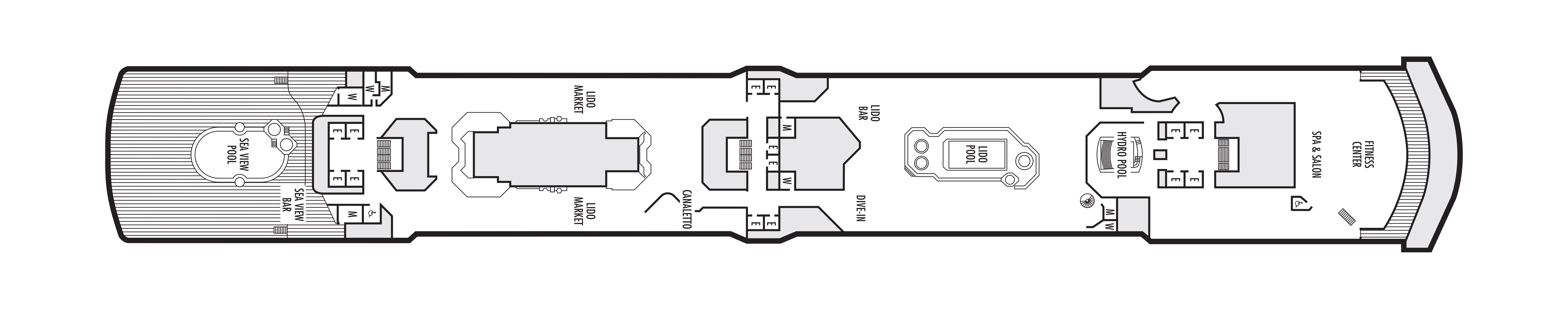 - You're never far from R&R on this deck. The Lido deck pools, Fitness Center and Spa & Salon await a deck above.