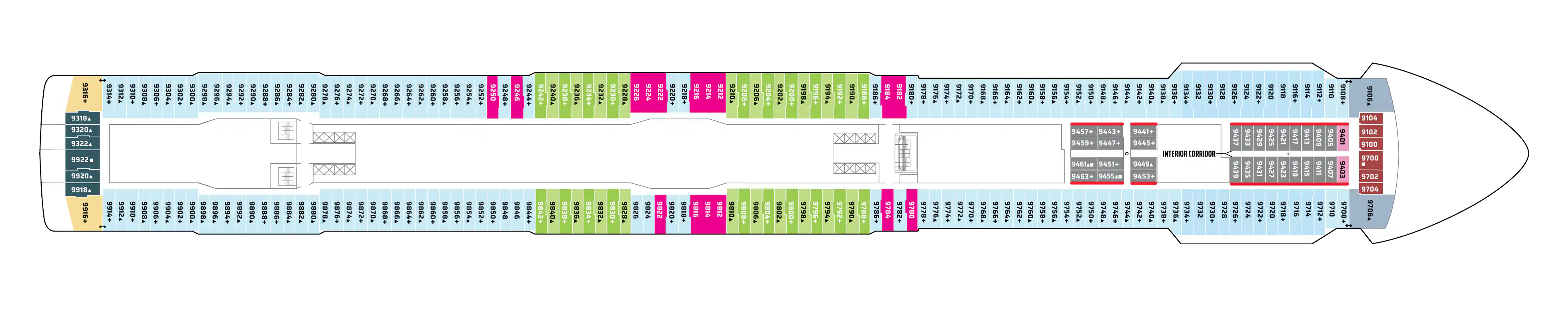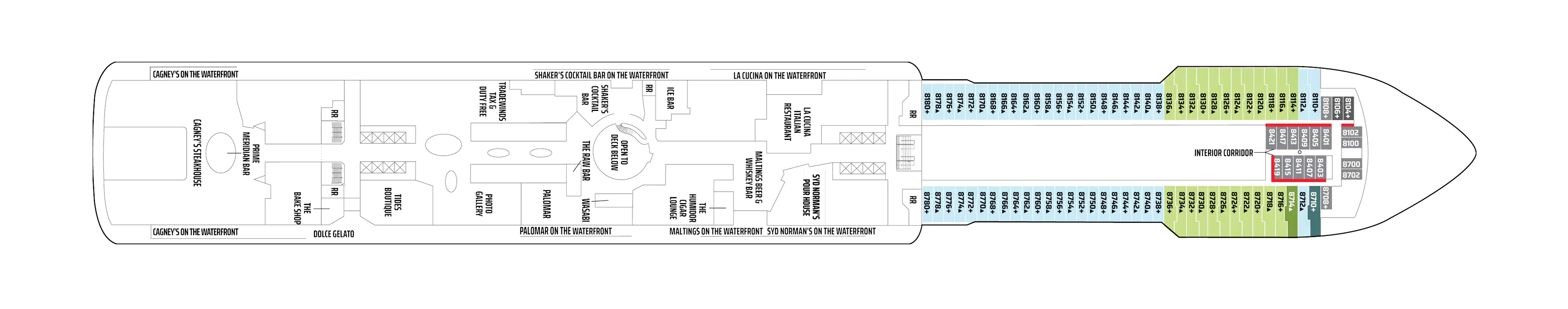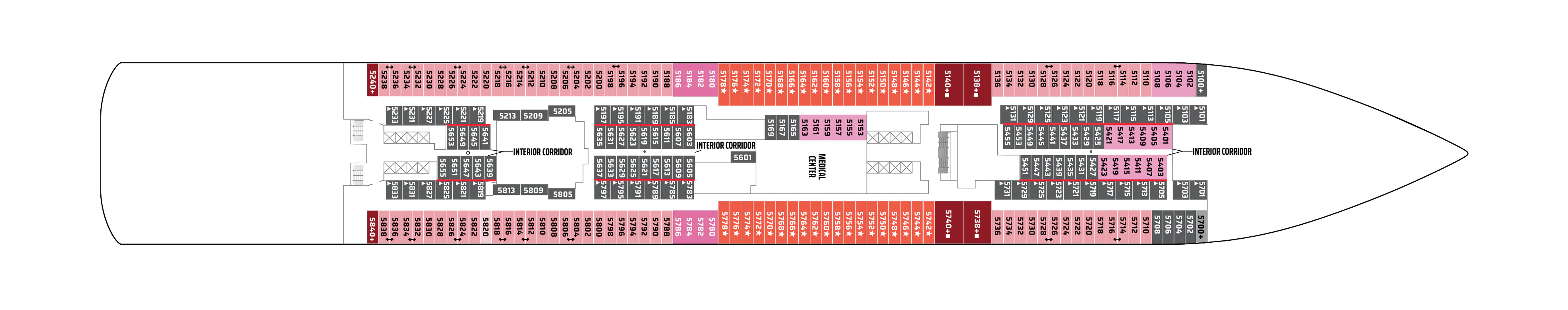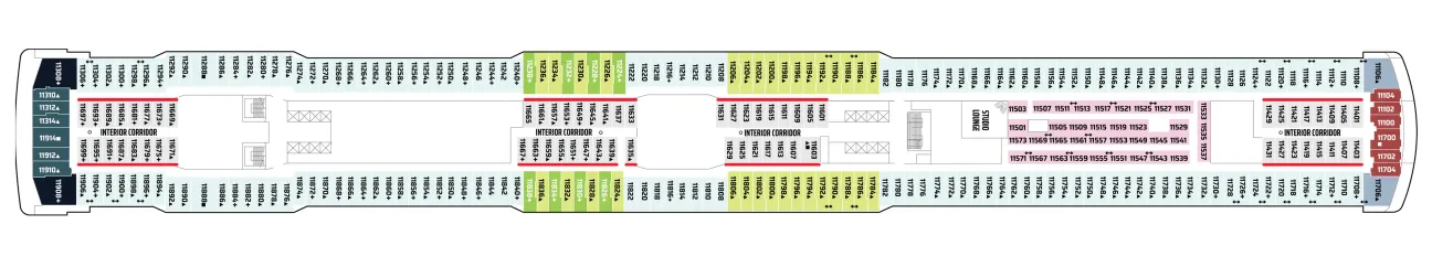 - A variety of cabins are available on this deck; see accommodation descriptions for details.