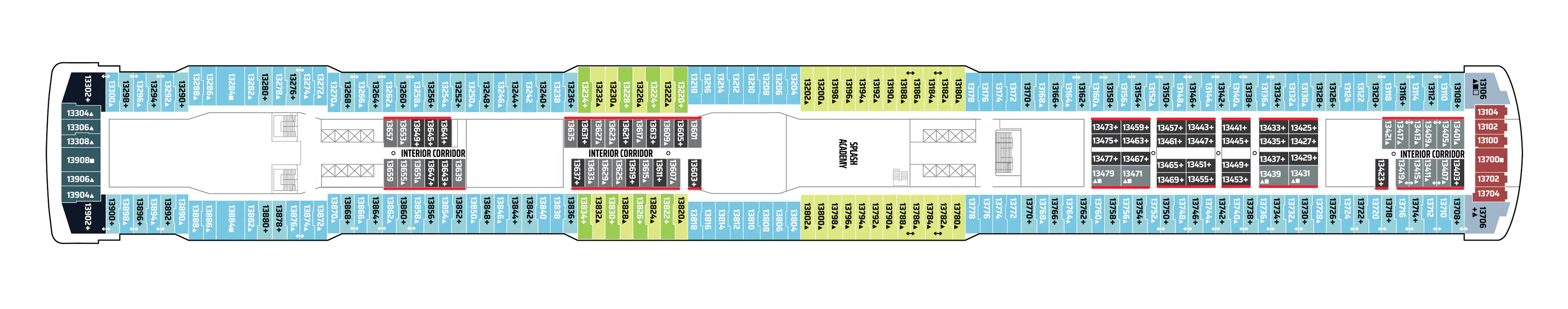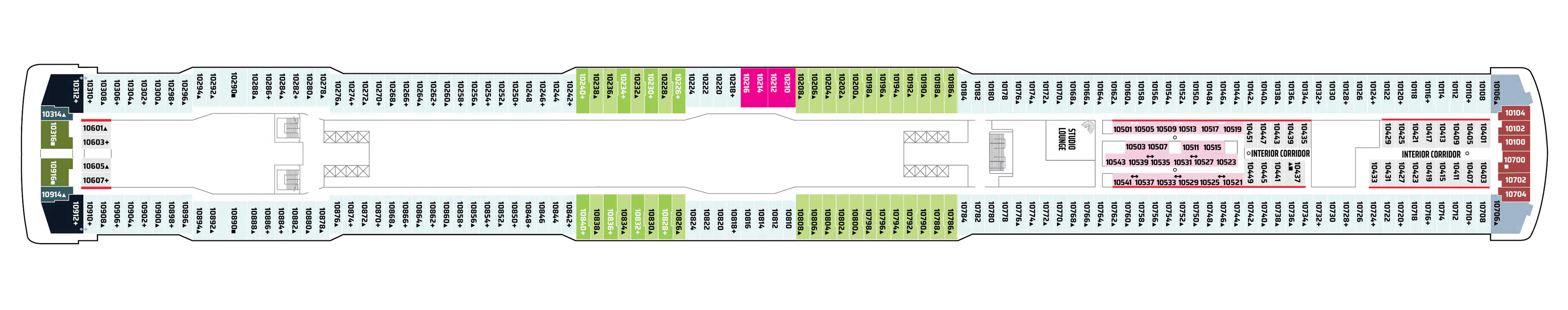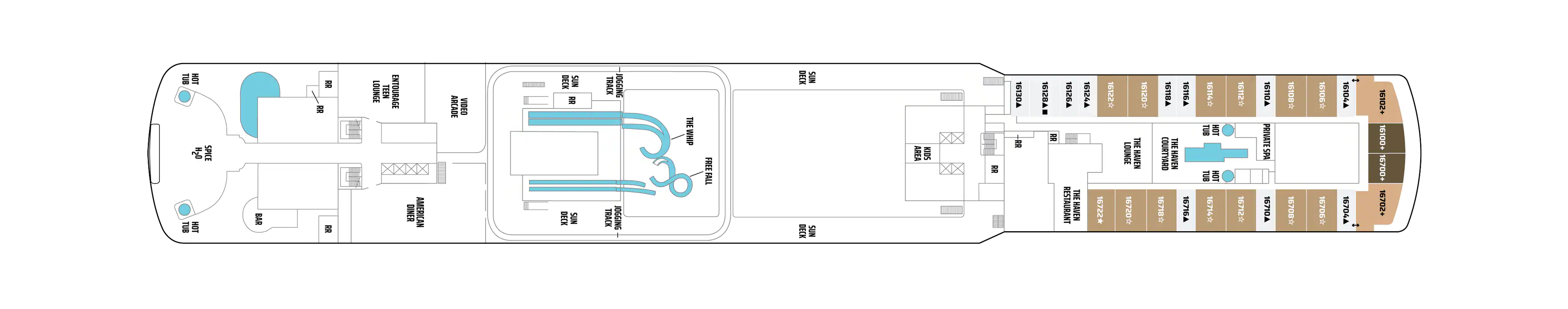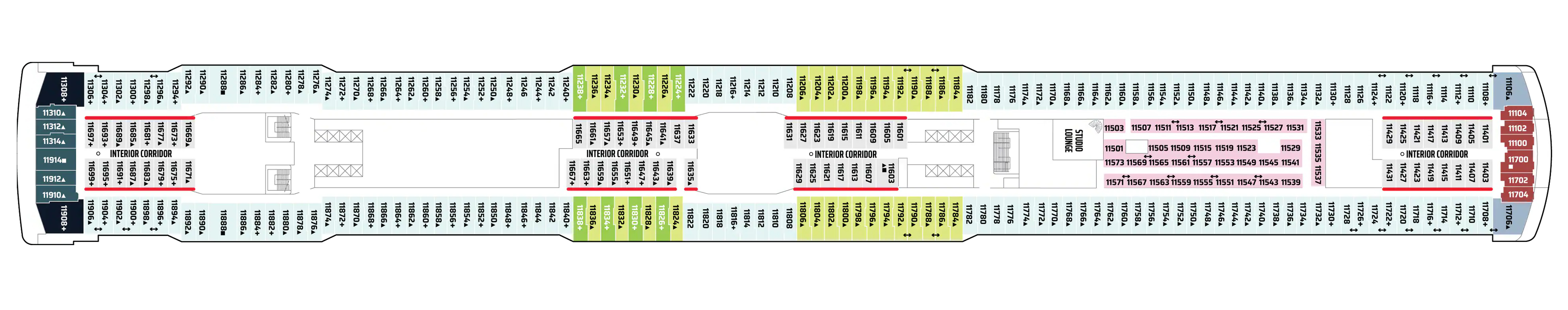 - A variety of cabins are available on this deck; see accommodation descriptions for details.